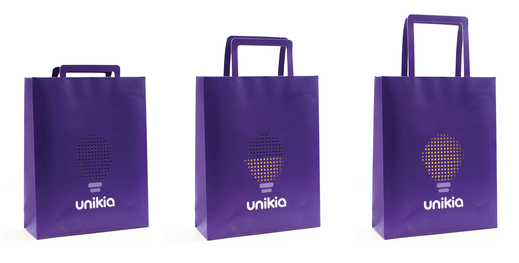 LIGHTBULB BAG - shopping bag - Every time a customer buys a product, they are literally buying an idea. While at Unikia, I designed and proposed this shopping bag. It has special sliding handles that animate Unikia’s light bulb logo, “turning it on or off” as a customer picks it up. The bag not only lends itself to the company’s identity but communicates the essence of its brand - ideas.